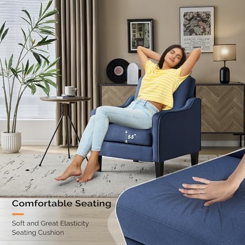 VINGLI Mid century Modern Accent Chair,Navy Blue Fabric Accent Chairs