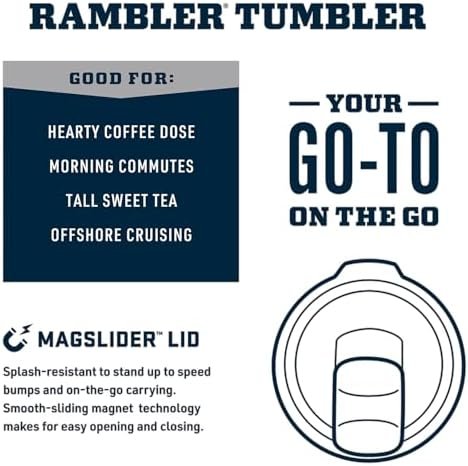 RAMBLER 20 OZ TUMBLER WITH MAGSLIDER LIDWith the Rambler 20 oz. Tumbler, your beverages will stay ice cold or piping hot longer. We over-engineered these double-wall insulated tumblers with an 18/8 stainless steel body, which means your drink still keeps its temperature no matter how much of a beating this cup takes. They’re BPA-free (obviously), have a No Sweat Design to make sure your hands stay dry, and are dishwasher-safe. Plus its crystal-clear lid lets you check your drink status in a flash. Refill, anyone?The YETI 20 oz Rambler Tumbler stands 6 7/8 in high and has a lip diameter of 3 1/2 in. All YETI Tumblers are sized to fit in standard sized cup holders.18/8 STAINLESS STEEL Made with kitchen-grade stainless steel, so they’re puncture- and rust-resistant.DOUBLE-WALL VACUUM INSULATION Keeps cold drinks cold and hot drinks hot until the last sip.NO SWEAT DESIGN Keeps fingers dry and unfrostbitten.MAGSLIDER LID