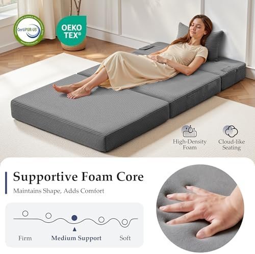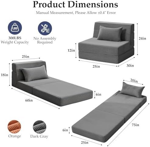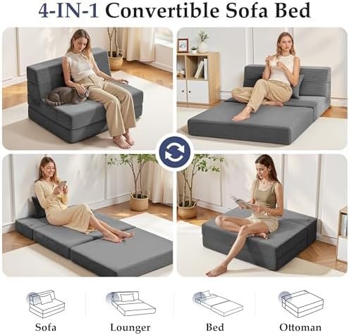 Youzi Folding Sofa Bed Convertible Sleeper Chair with Pillow, 4-in-1 Foldable
