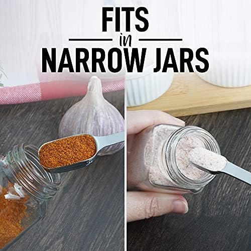 SMART AND THOUGHTFUL DESIGN: These measuring spoons feature slim, rectangular spoon-heads and long handles that can easily fit into narrow spice jars, bottles, and containers to scoop ingredients without spillage. The easy-to-open clasp allows you to use the spoons individually instead of taking the entire bunch. The stackable design lets you save space.